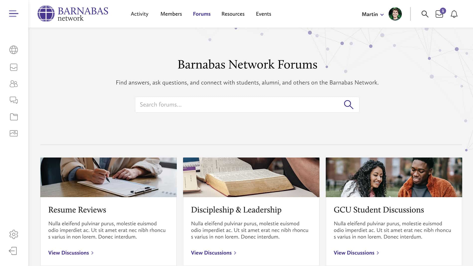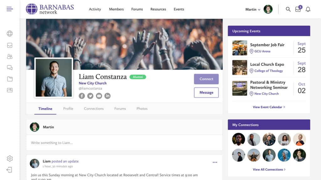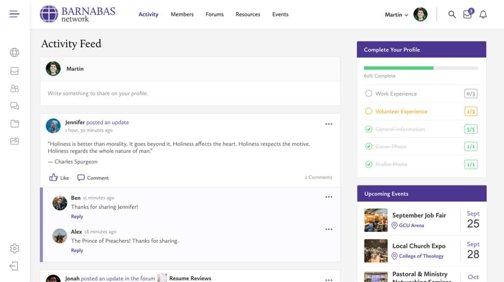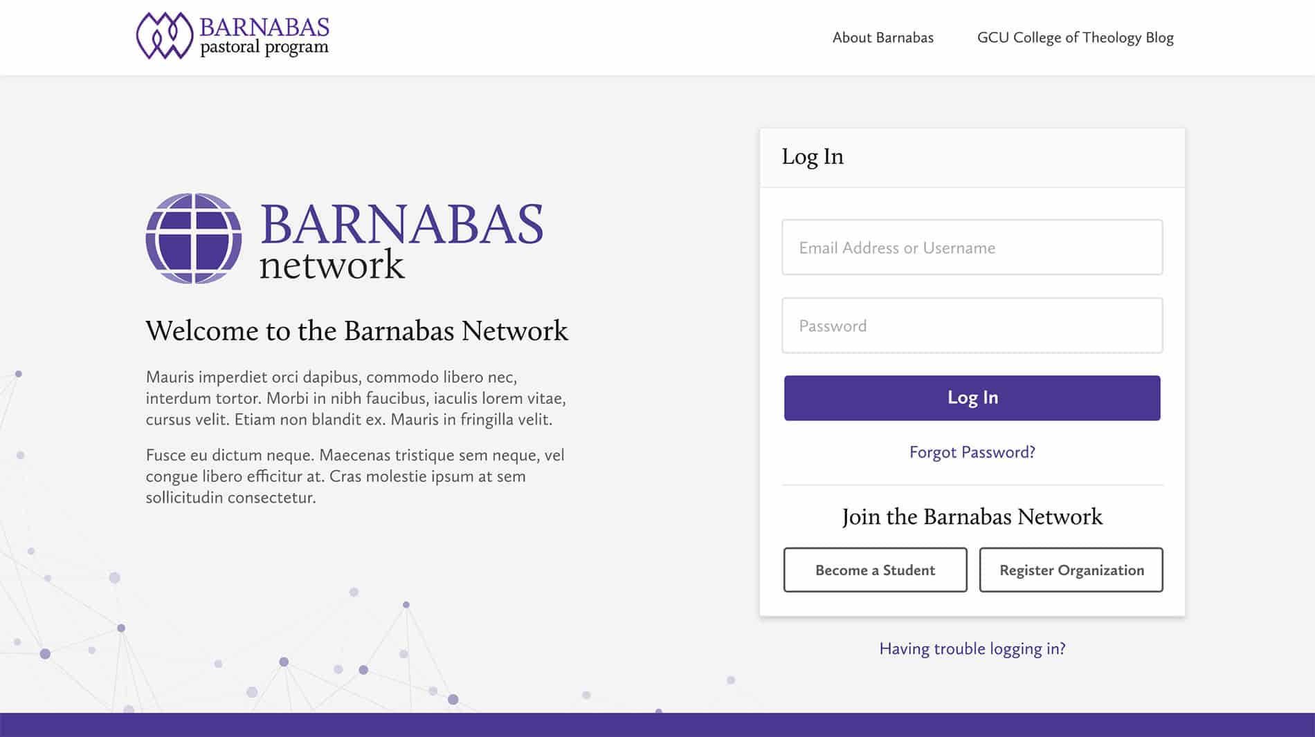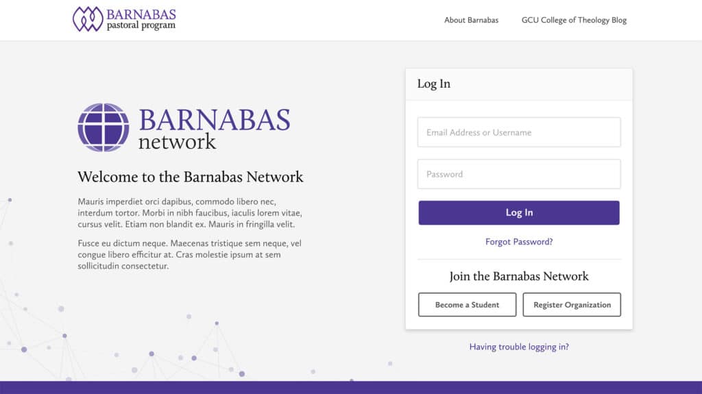In contrast to the Grand Canyon University website and model, The Barnabas Network pursued a more professional design and voice that targeted young adults who were preparing to move from college to pastoral and ministry work. This network emphasized a relational experience among users, providing opportunities for students to connect, collaborate, and engage with organizations and individuals who could support them with resources, job listings, and other tools.